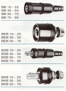 DESCRIPTION: Conectores fijos en máquina y aereos o en cable para cable masa y /o pinza portaelectrodos para soldadura principalemente, conectores en cobre recubiertos de goma o material aislante