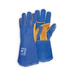DESCRIPTION: Guante vacuno crupón azul. 1,3 mmForro especial ignifugo. Refuerzo en palma y pulgar. HIlo KevlarLongitud: 35 cm